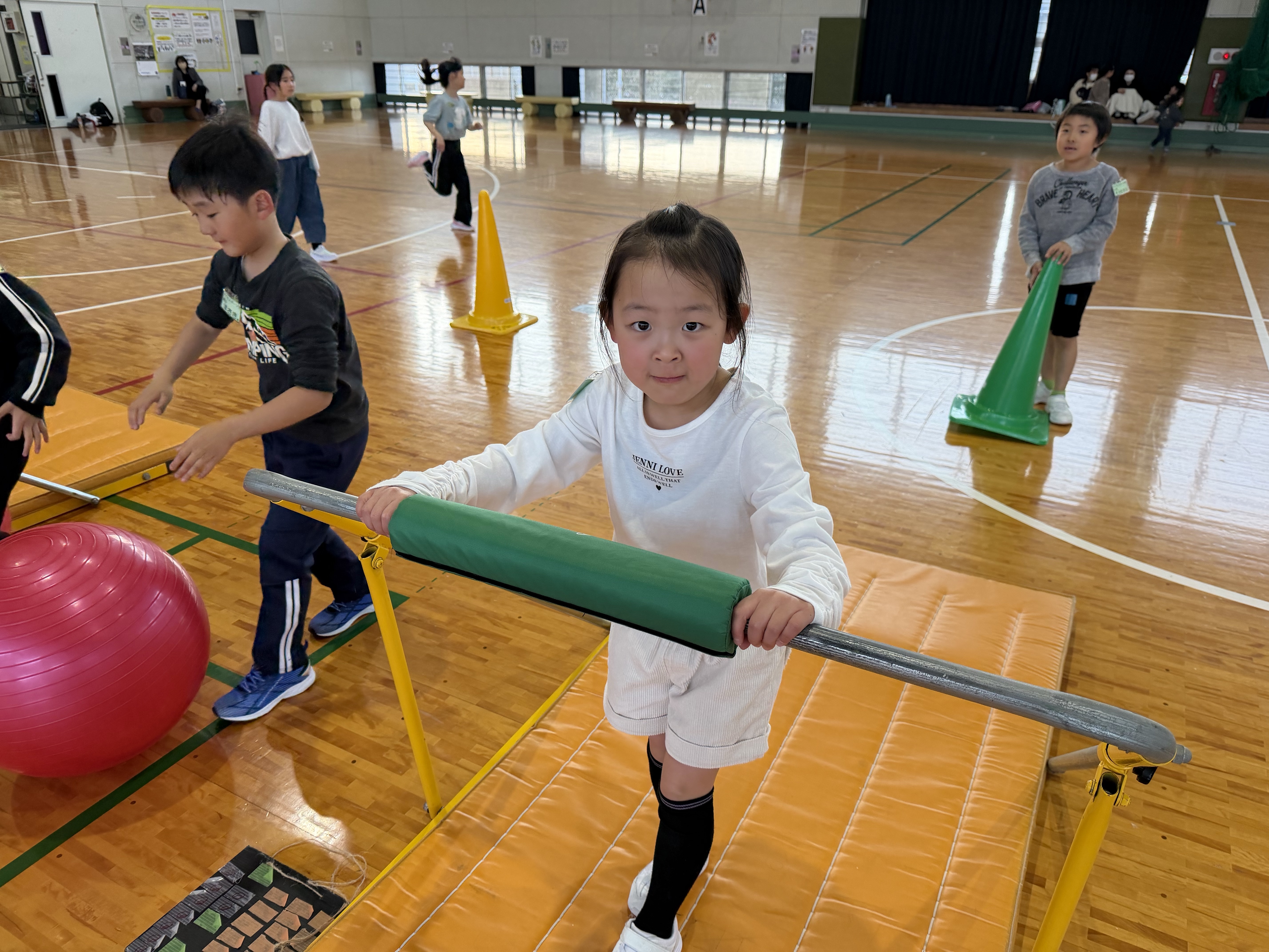 器具や用具などでの運動を重点的に行い、バランス感覚や柔軟性、筋力の向上を図ります。また、子ども同士や講師とのコミュニケーションを通じて、判断能力やスムーズな切り替え、集中力アップを目指します。