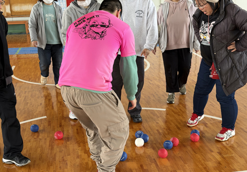 スマイルボウリングやボッチャなど、毎回違う種目の競技を実施します。ルールに縛られず、みんなが楽しくをモットーに笑顔あふれる教室です。